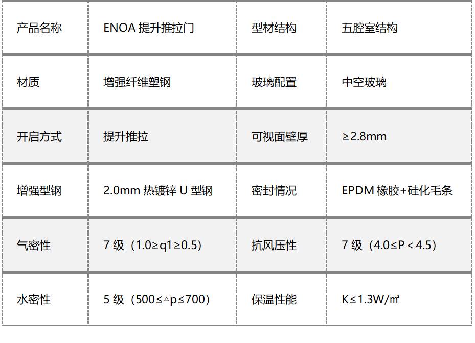 迪美斯高氣密提升推拉門系統通過特殊的五金配置實現安全鎖閉和輕松開啟之間的轉換,在厚重的門窗本體滿足高保溫、強降噪的同時在使用方面達到便捷無阻礙的需求,五金使用諾托、絲吉利婭等德國進口提升推拉門系統,使單扇承重達到350公斤,配置鑲嵌式不銹鋼軌道,另配有阻尼緩沖器,可以使門扇開關時達到靜音且安全減震的效果,也可以通過加裝電動內置百葉或新風系統等智能裝配系統實現智能家居,滿足高端客戶需求。
